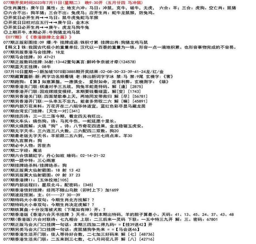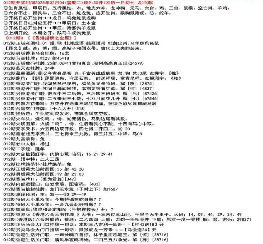 ◎六合不出:牛龙猴;三合不出:鼠蛇鸡;应开动物:羊兔猪虎狗。防:鼠马