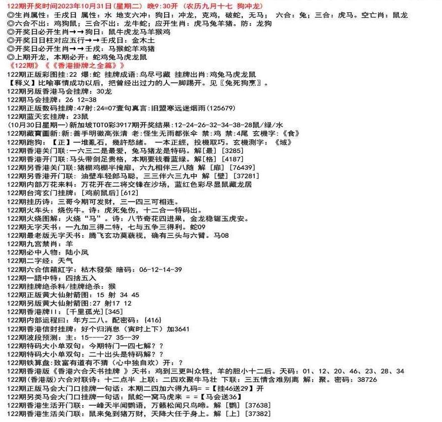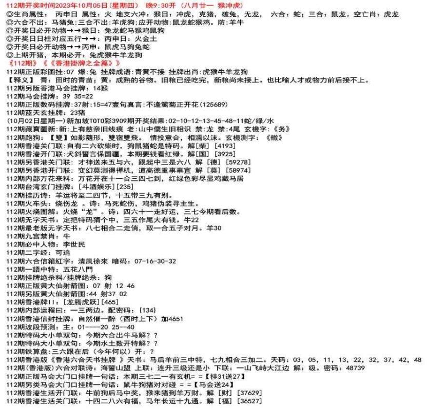 111期(香港版)六合对联诗:三三足养 上联:头在天上脚落地 下联:说是龙来假一字 解:落。密码:38729